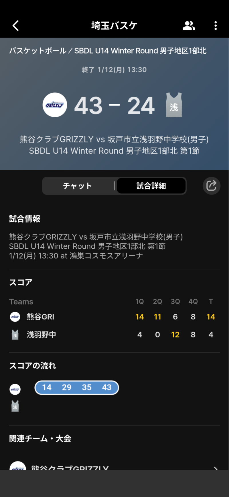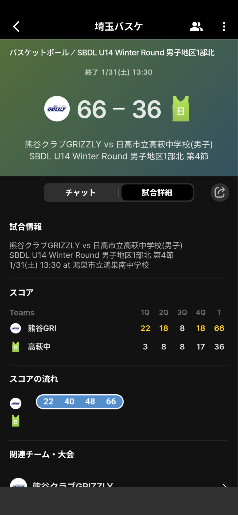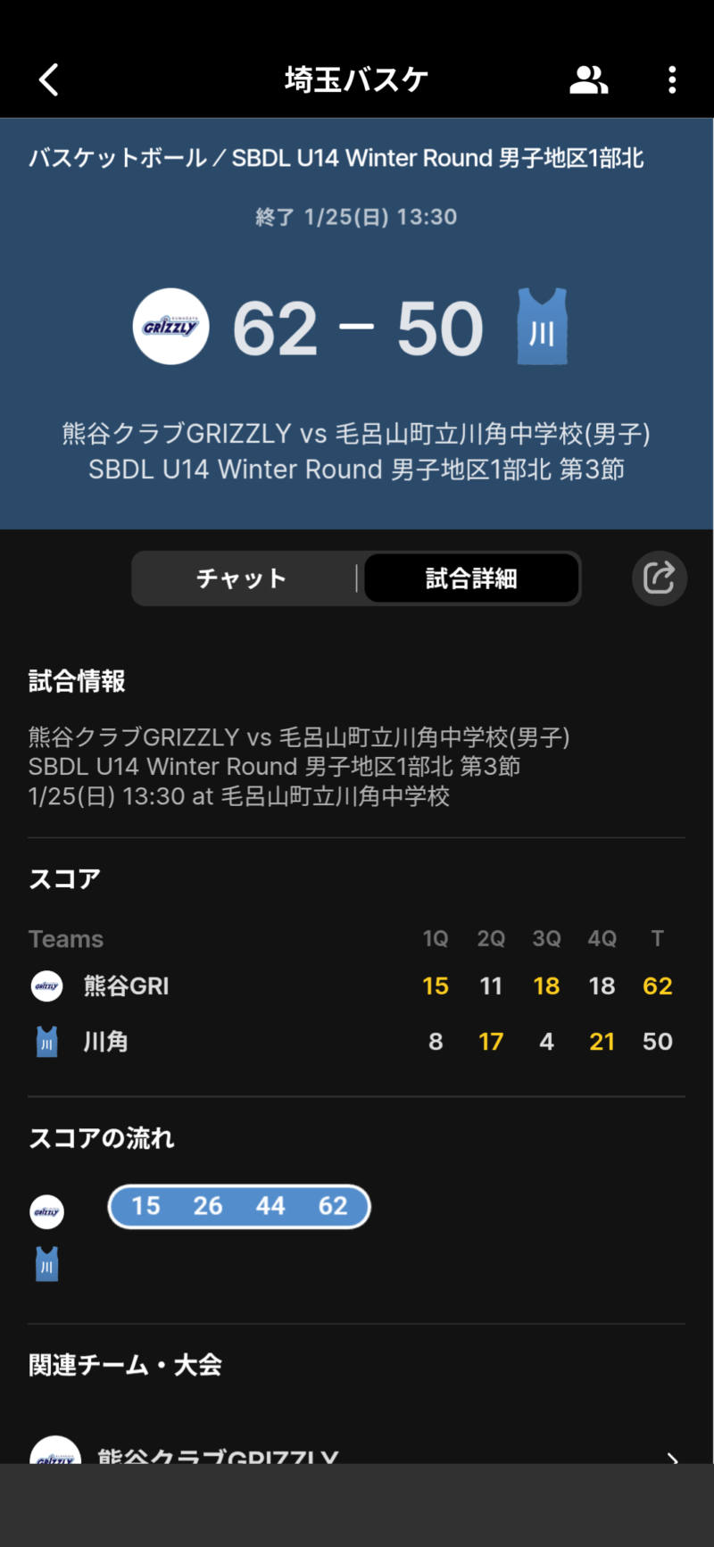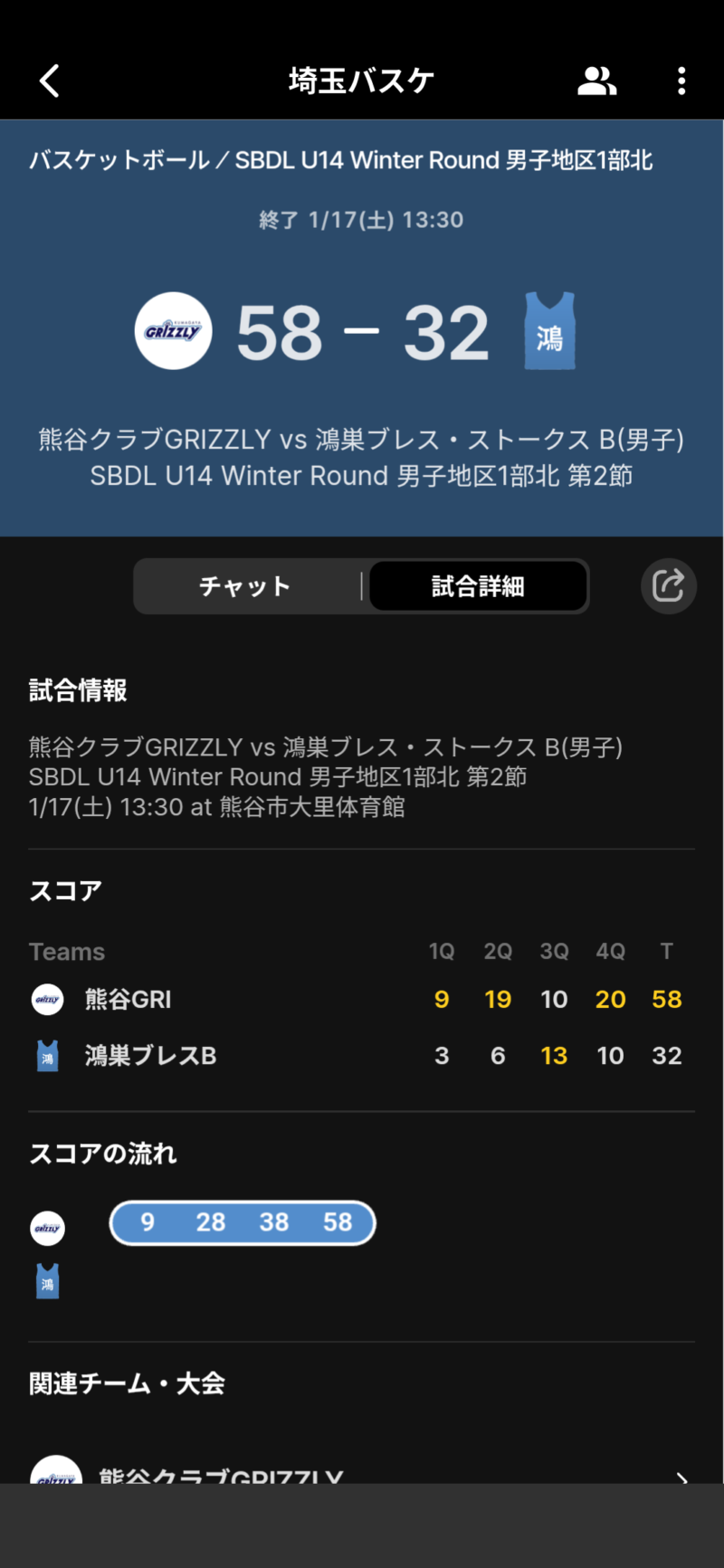 SBDL U14 Winter Round GRIZZLY TOPICS Twitter Facebook LINE コピー 2026.02.28 SBDL U14 Winter Round 男子地区1部北部に参加させていただきました。GRIZZLYの全員バスケで大きく成長できました。ありがとうございました。 大会結果